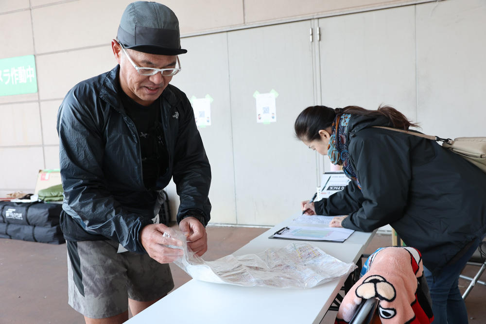 受付では、様々な参加賞と共にゼッケンや地図をお渡しします。